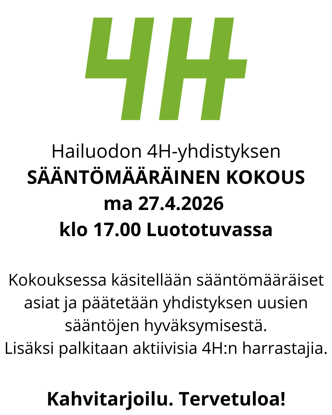 Yhdistyksen sääntömääräinen kokous 27.4.2026