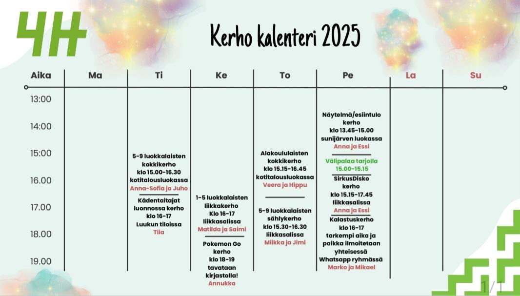 Kerhoihin ilmoittautuminen tapahtuu ensimmäisellä kerhokerralla. Ohjaaja kerää kerhovihkoon tarvittavat tiedot kerholaisesta ja huoltajasta (puhelinnumero).